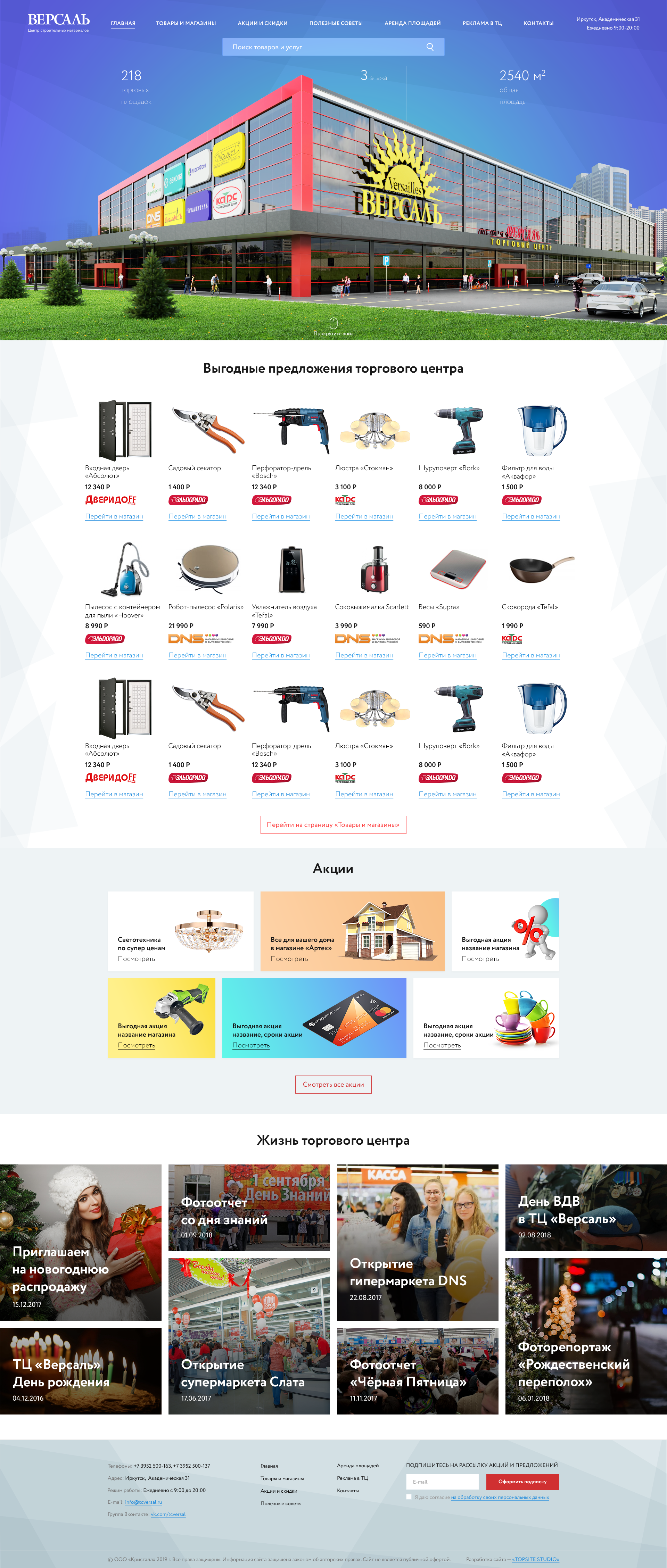 Вёрстка главной страницы для нового сайта ТЦ «Версаль» (без адаптации). Настройка нескольких скриптов |