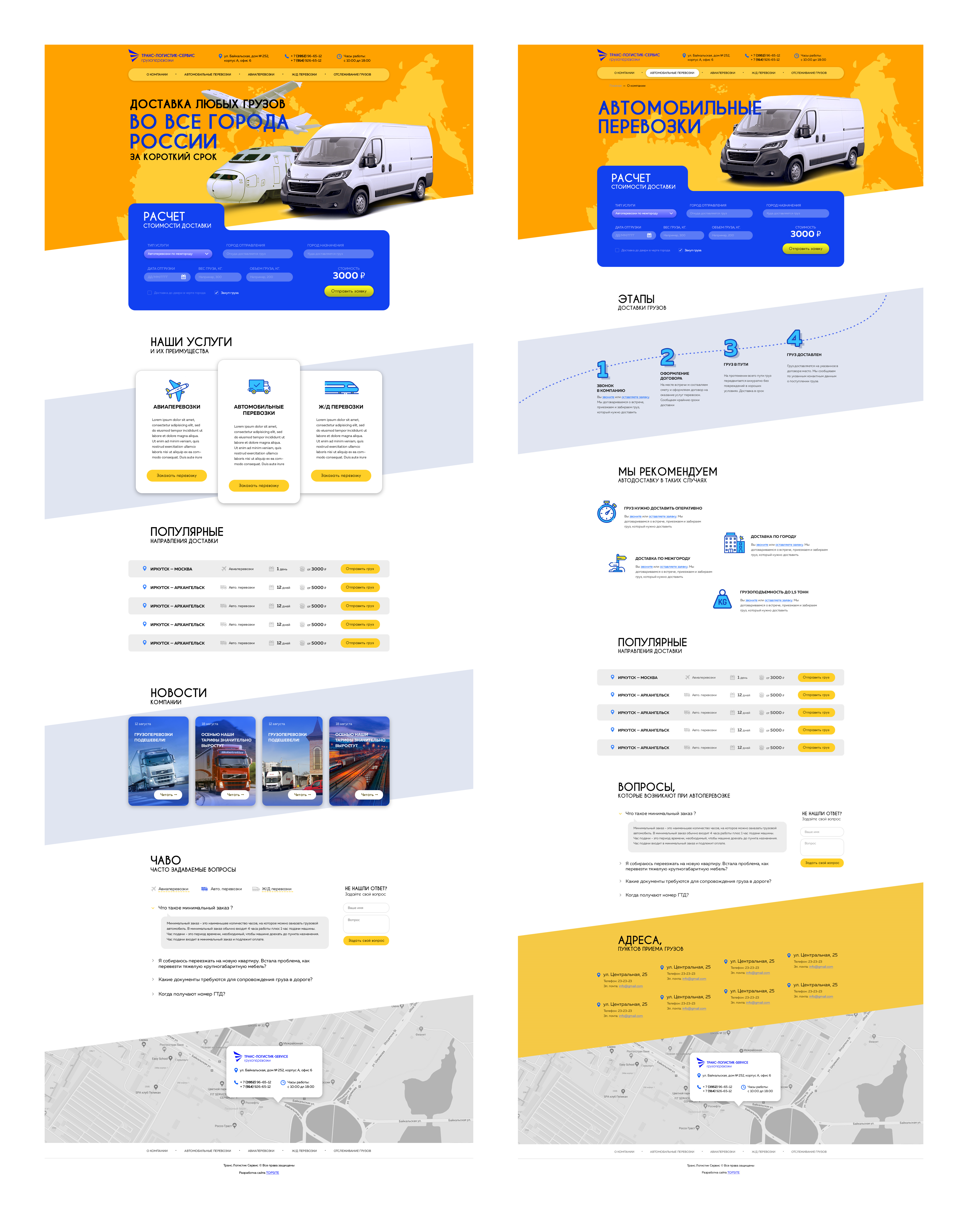 Вёрстка и адаптация нового сайта для компании по грузоперевозке и логистике. Настройка необходимых скриптов |
